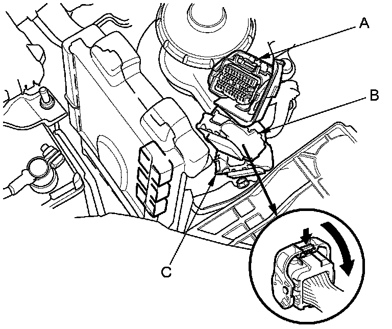 2. Disconnect ECM/PCM connectors A, B, and C.