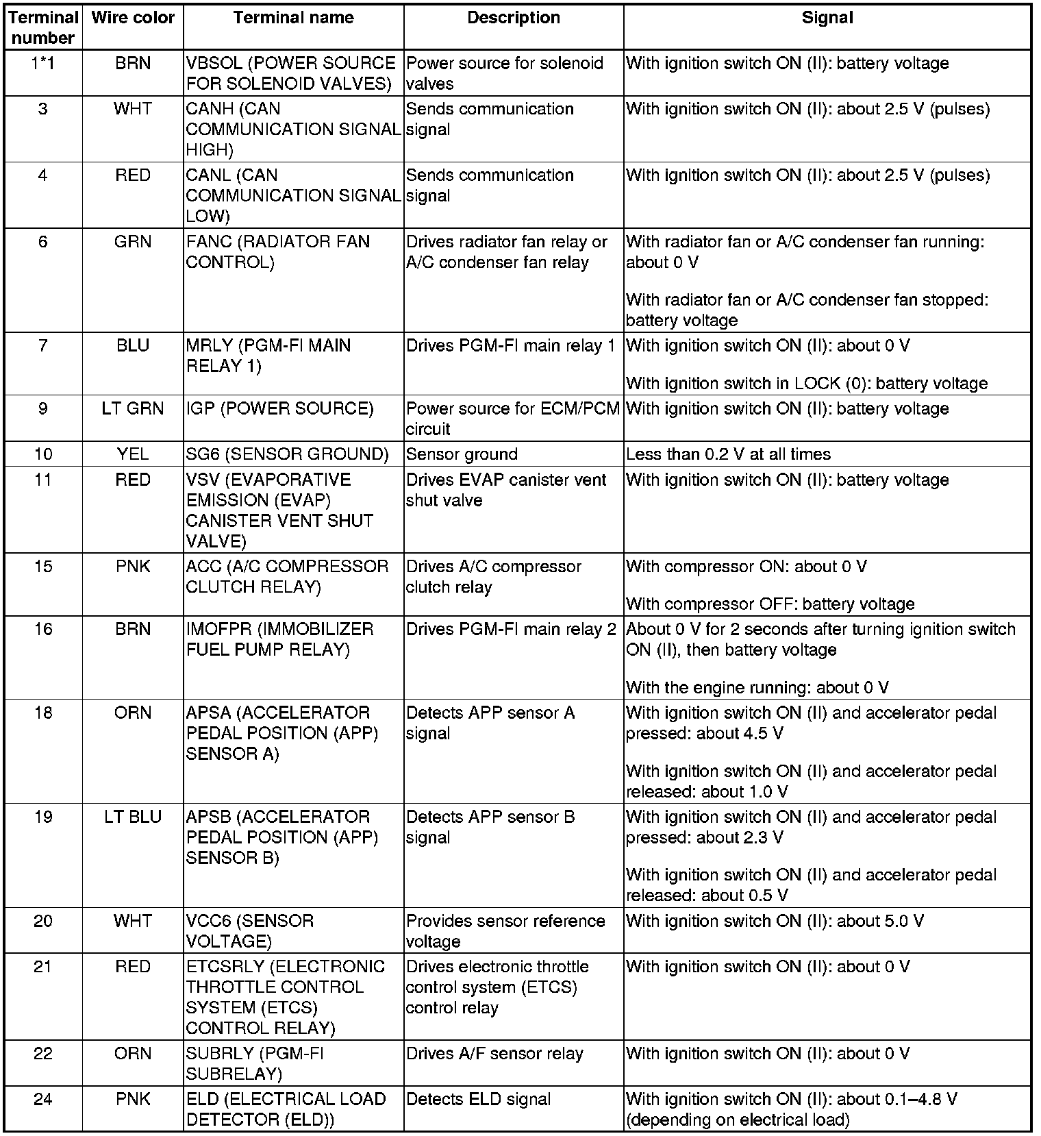 ECM/PCM Inputs and Outputs at ECM/PCM Connector A ((square)) (49P)