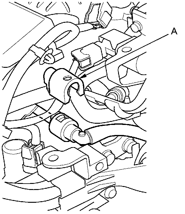 12. Place a rag or shop towel over the quick-connect fitting (A).