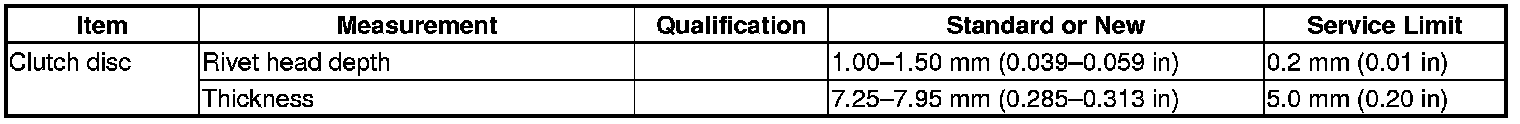 Clutch Disc Specification(s) (M/T)