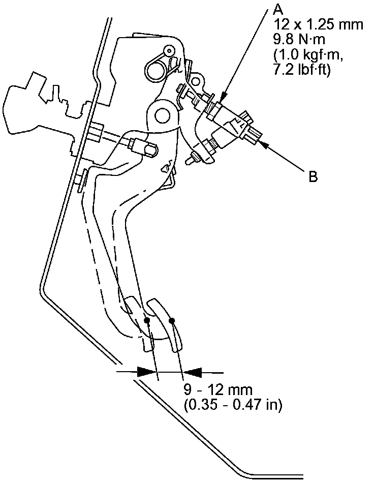 9. Fully press the clutch pedal to the floor, then release the clutch pedal 9-12 mm (0.35-0.47 in) and hold it there.