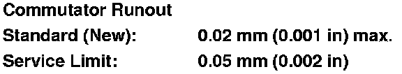 - If the commutator runout is within the service limit, check the commutator for carbon dust or brass chips between the segments.