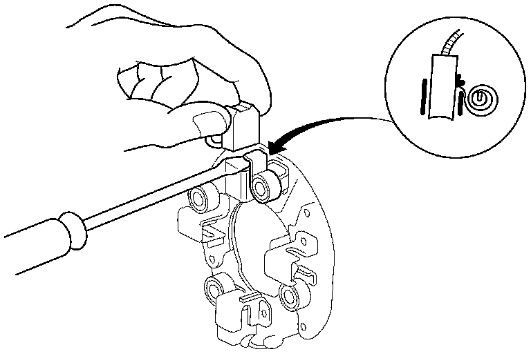 14. Check for continuity between the (+) brush holder (A) and (-) brush holder (B). If there is continuity, replace the brush holder assembly.