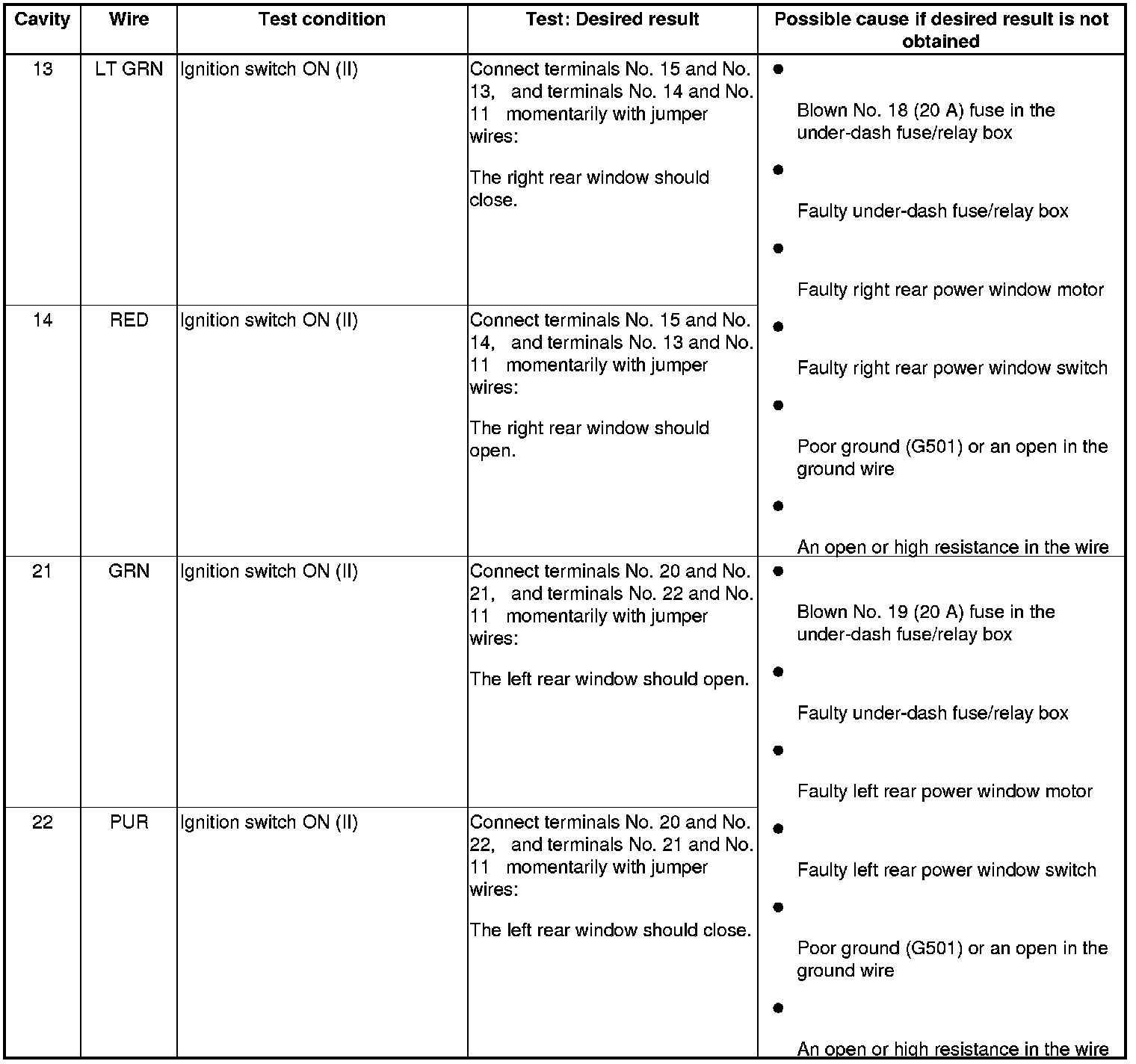 - If all the input tests prove OK, the control unit must be faulty; replace the power window master switch Power Window Master Switch Replacement.