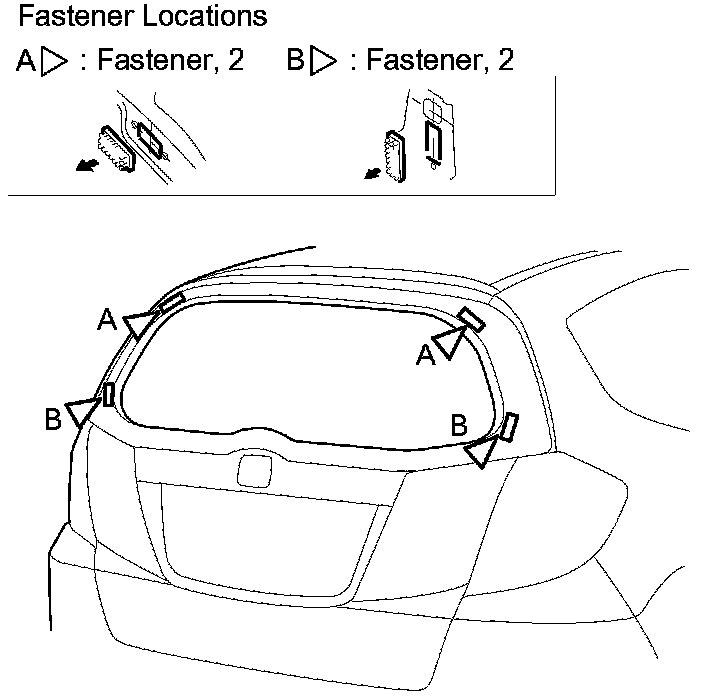 14. Attach the fasteners (A, B) with adhesive tape to the tailgate as shown.