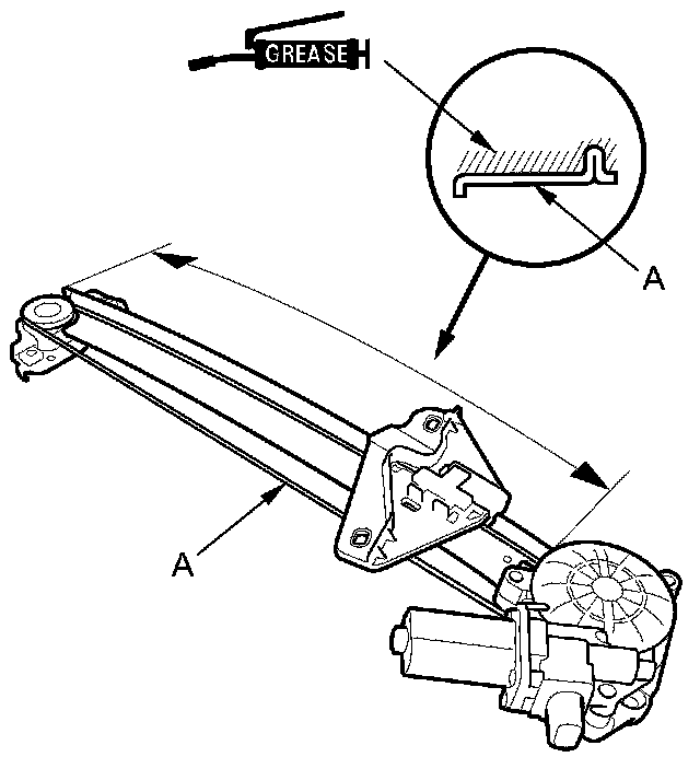 11. Apply multipurpose grease to all the sliding surfaces of the regulator (A) where shown.