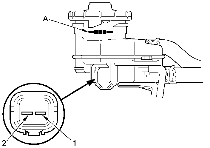 - Fill the reservoir/subreservoir with brake fluid to the MAX (upper) level (A). With the float up, there should be no continuity.