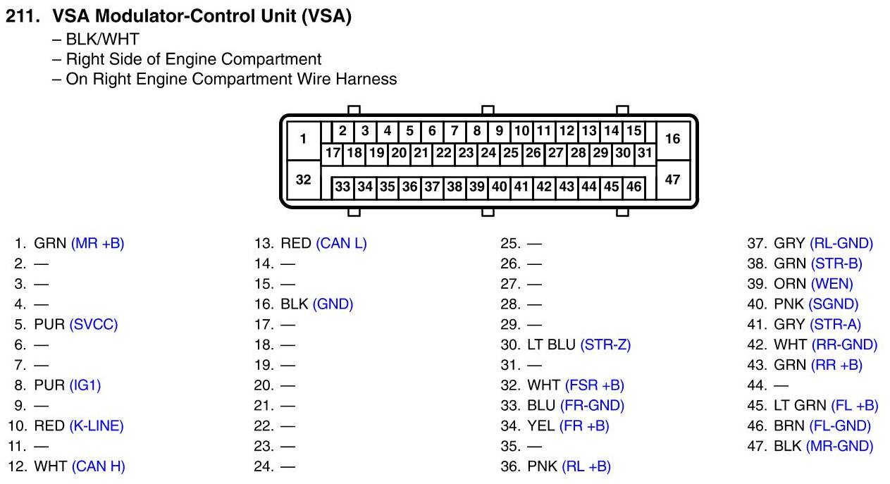 View 211 - VSA Modulator-Control Unit Connector View (VSA)