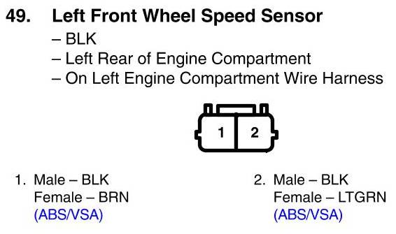 Left Front Wheel Speed Sensor Connector View