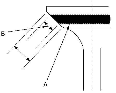 7. The actual valve seating surface (B), as shown by the blue compound, should be centered on the seat: