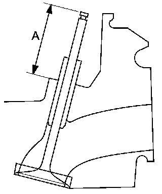 8. Insert the intake and exhaust valves in the head, and measure the valve stem installed height (A).