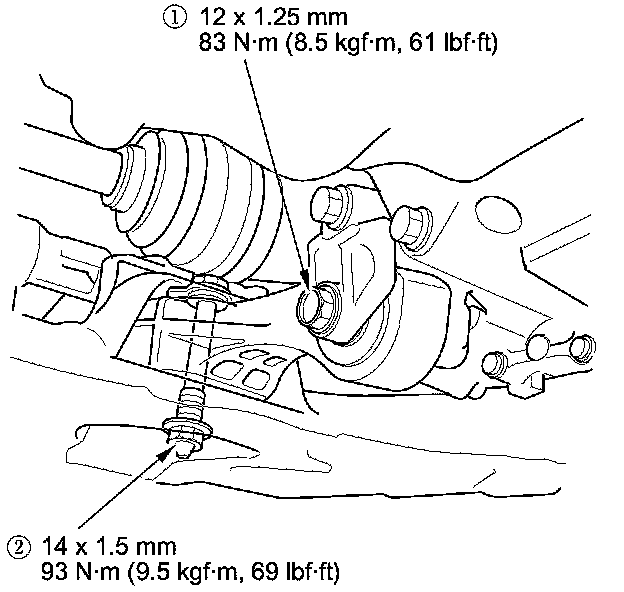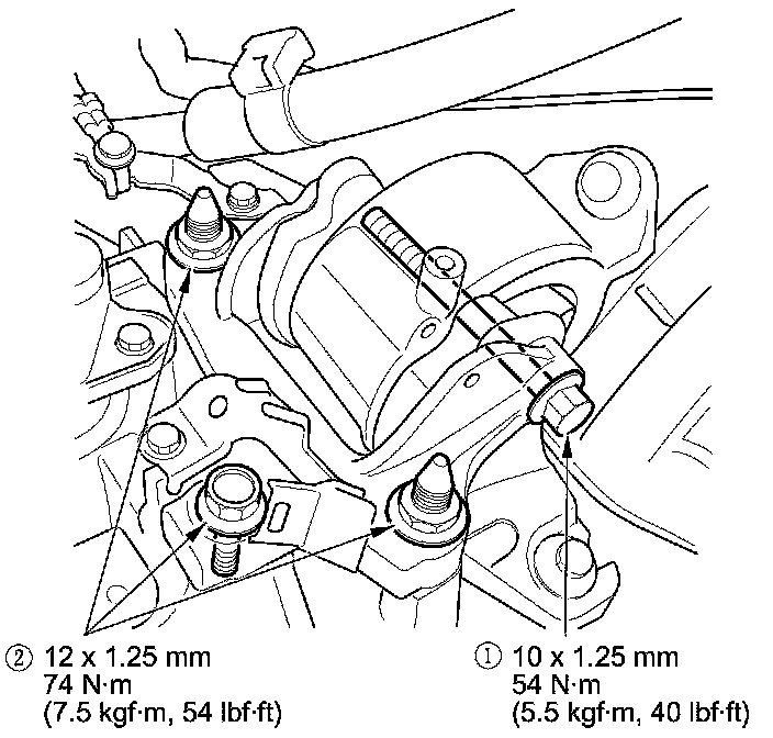 24. Tighten the torque rod mounting bolt and nut in the numbered sequence shown.