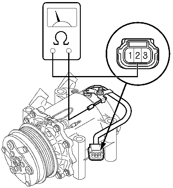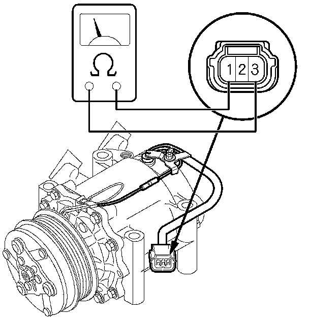 4. Check the thermal protector for continuity between A/C compressor clutch 3P connector terminals No. 1 and No. 3. If there is no continuity, replace the thermal protector Service and Repair.