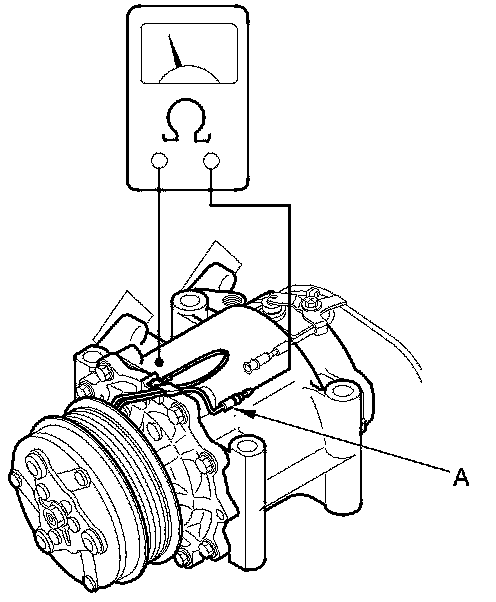5. Release the field coil connector from the holder, then disconnect it. Check for continuity between A/C compressor clutch 3P connector terminal No. 2 and the 1P connector. If there is no continuity, replace the thermal protector Service and Repair.