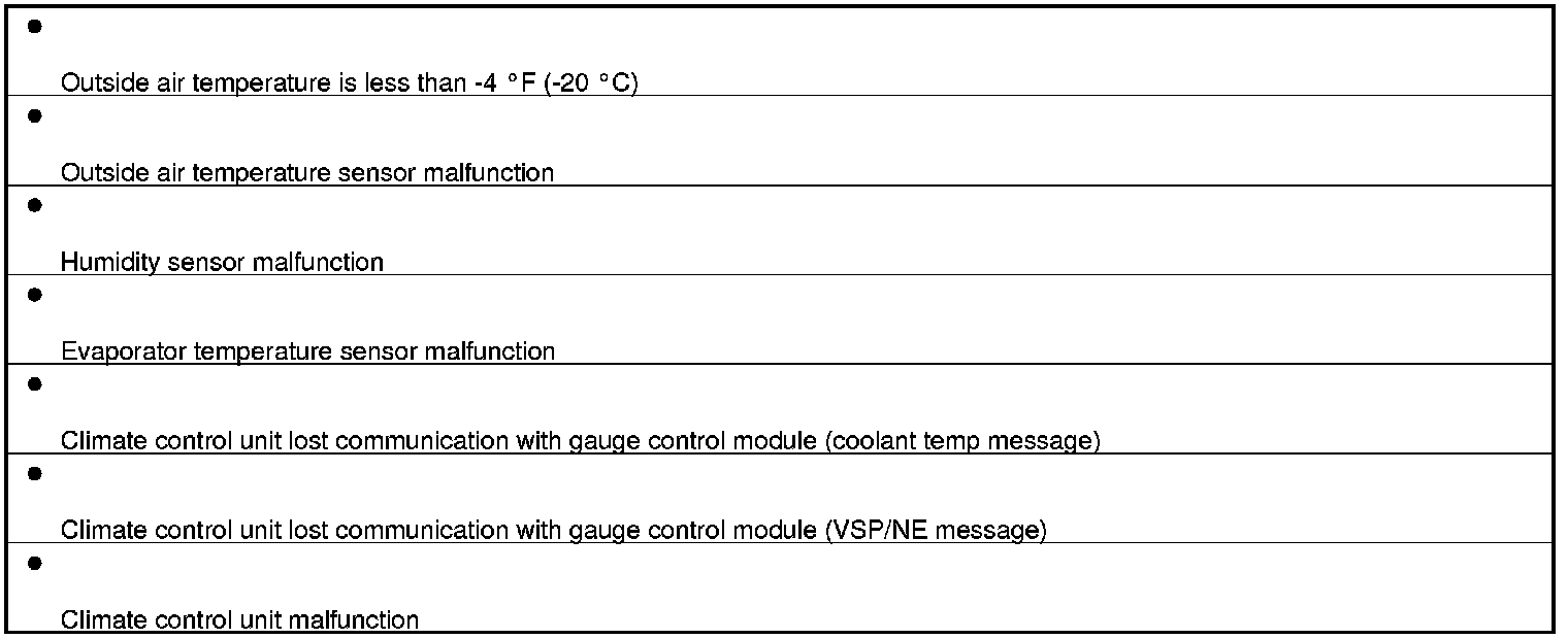 The air conditioning system does not control ECON ON Mode under the following conditions.