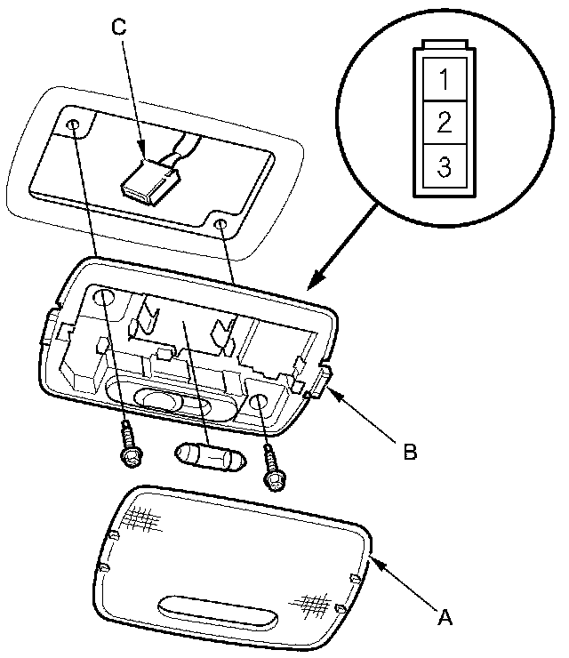 4. Disconnect the 3P connector (C) from the ceiling light.