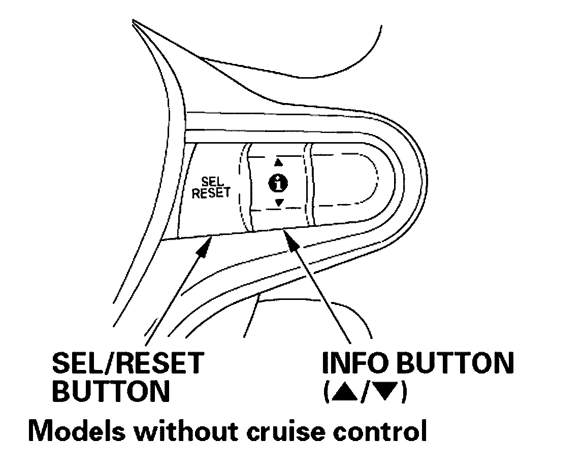 4. Select "RESET" by pressing the INFO button, then press the SEL/RESET button to reset the engine oil life display. The maintenance item code(s) will disappear, and the engine oil life will reset to "100." If you want to cancel the oil life reset mode select "CANCEL."