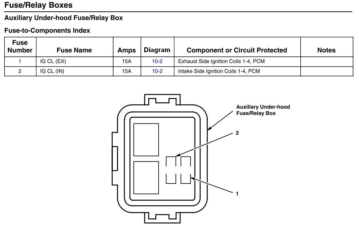 Auxiliary Under-Hood Fuse/Relay Box - Fuse-To-Components Index