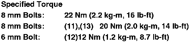 Torque the cylinder head bolts in sequence to 29 N-m (3.0 kgf-m, 22 lbf-ft)