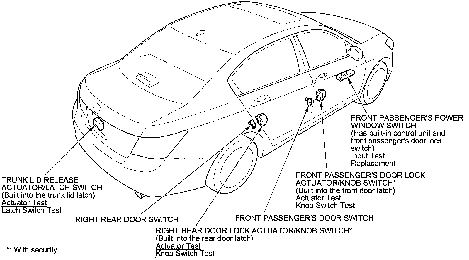 Keyless/Power Door Locks/Security System Component Location Index (4-Door)