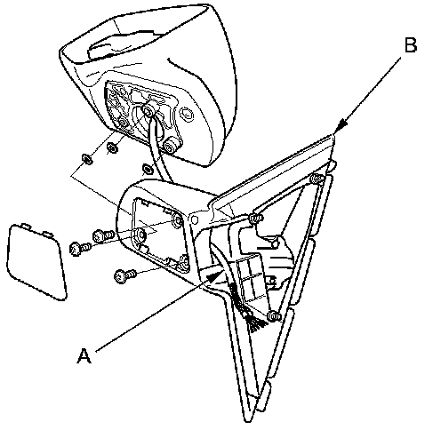3. Reassemble the mirror in the reverse order of removal. Apply LOCTITE to the three screws (B) and tighten to 4.4 Nm (0.45 kg-m, 3.2 lb-ft).