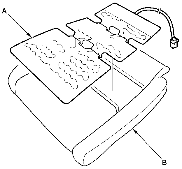 2. Carefully remove the seat cushion heater (A) from the seat cushion pad (B).