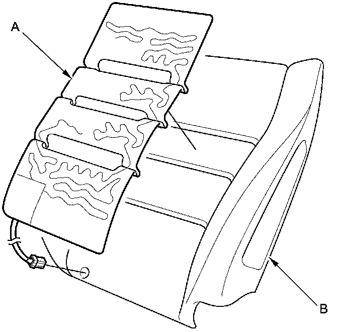 2. Carefully remove the seat back heater (A) from the seat back pad (B).