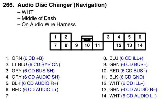 View 266 - Audio Disc Changer Connector View (Navigation)
