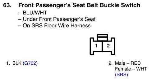 View 63 - Front Passenger's Seat Belt Buckle Switch Connector View