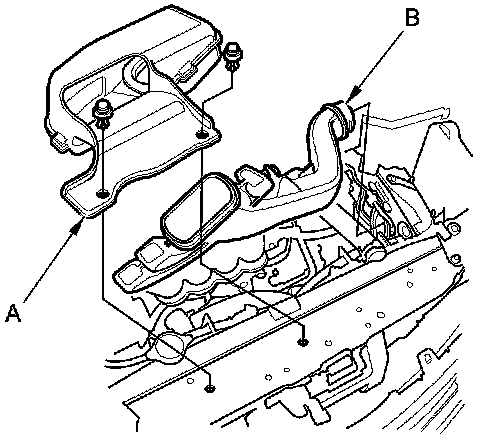 8. Disconnect the lower radiator hose (B) from the radiator.