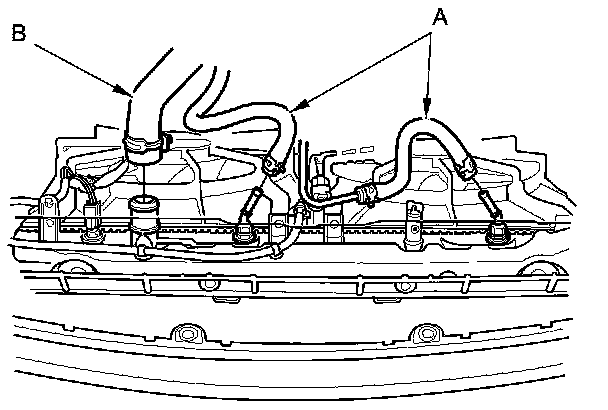 7. A/T model (without ATF warmer): Disconnect the ATF cooler hoses (A) Service and Repair, then plug the cooler hoses and the lines.