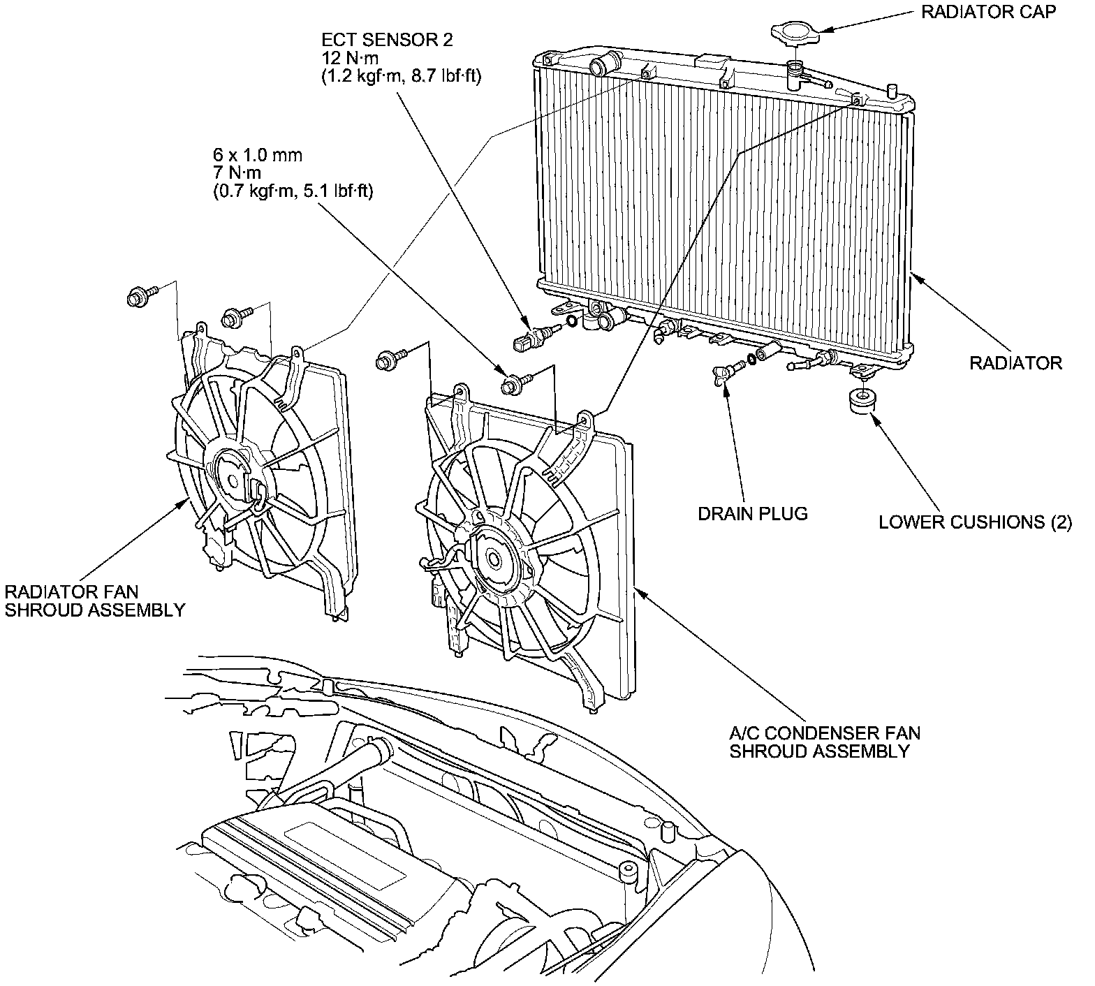 14. A/T model (without ATF warmer): Refill the transmission with the ATF ATF Replacement.