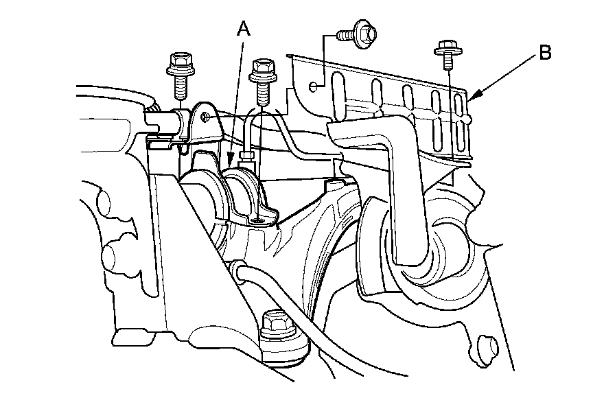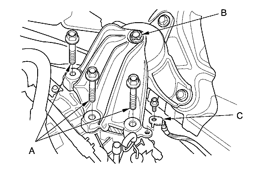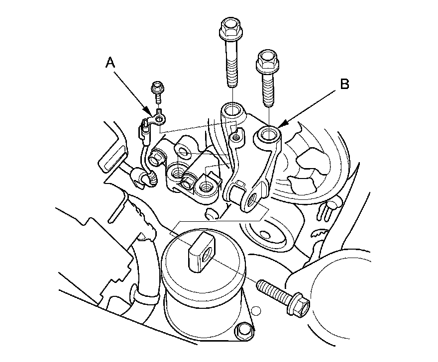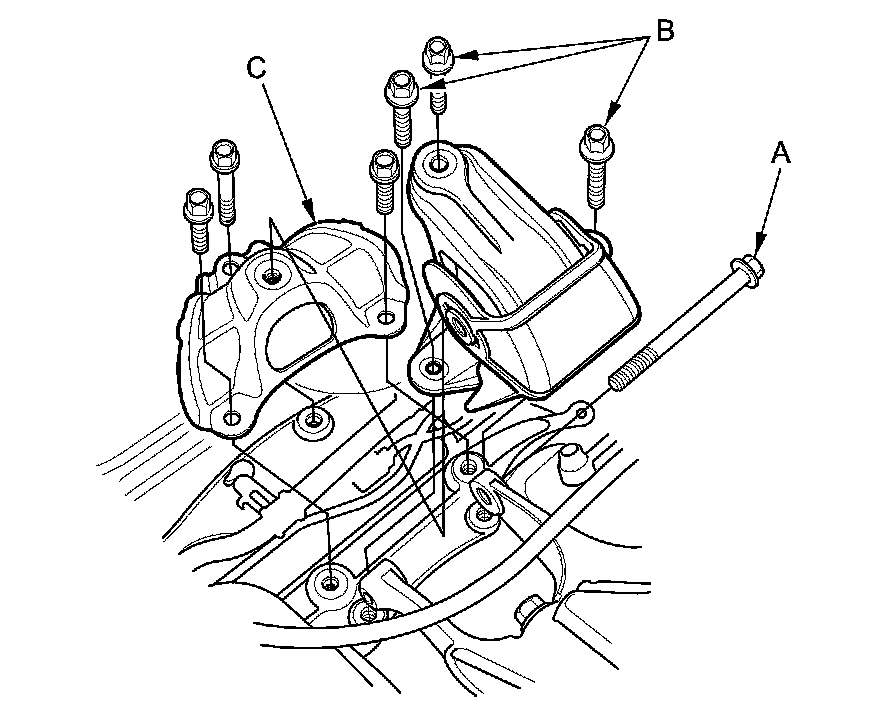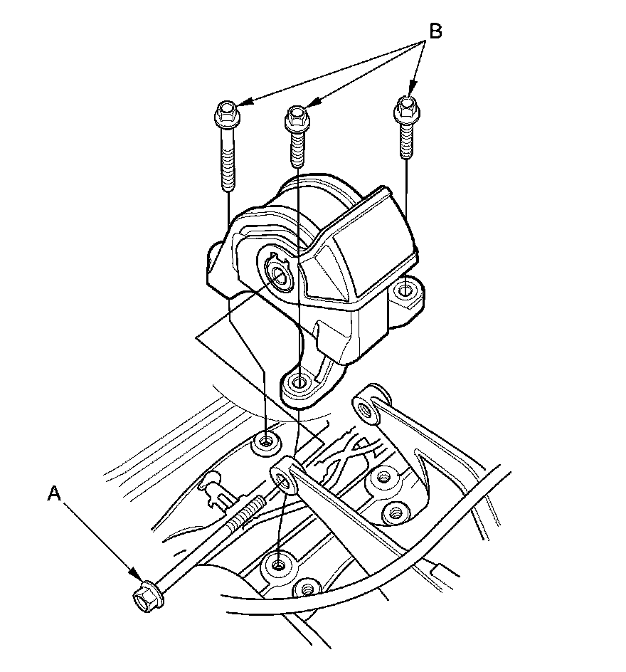 NOTE: Do not remove the TORX bolt (B) from the upper transmission mount. If the TORX bolt is removed, the upper transmission mount must be replaced as an assembly.