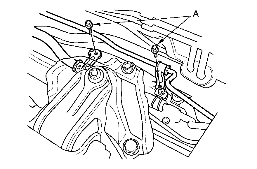 61. Remove the upper transmission mount bracket mounting bolts (A).