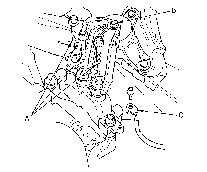 48. A/T model: Remove the rear engine mount upper bracket (C).