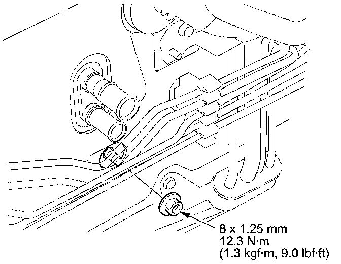 6. Remove the mounting nut from the heater unit. Take care not to damage or bend the fuel lines or brake lines, etc..