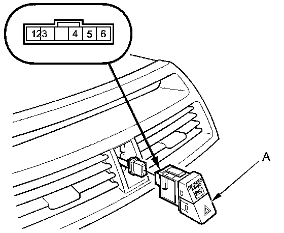 2. Remove the hazard warning switch (A).