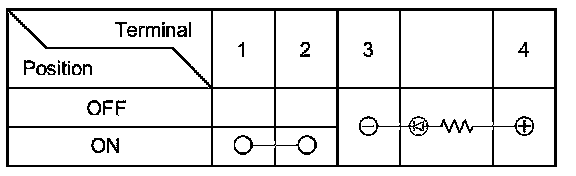 3. Check for continuity between the terminals in each switch position according to the table.