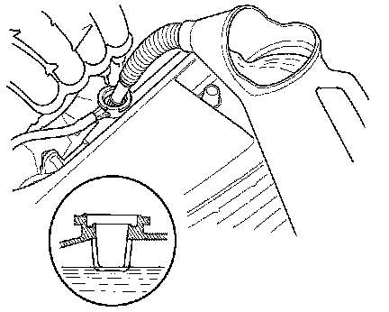 6. Pour Honda Long Life Antifreeze/Coolant Type 2 into the radiator up to the base of the filler neck.