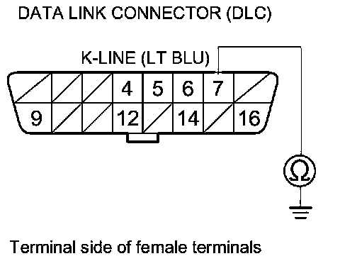 17. Check for continuity between DLC terminal No. 7 and body ground.