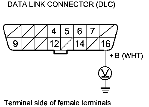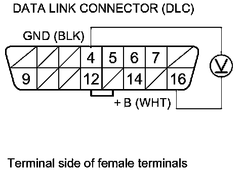 24. Measure the voltage between DLC terminal No. 16 and body ground.