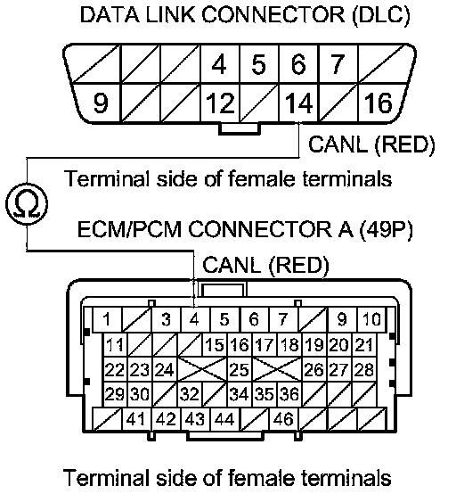 31. Check for continuity between ECM/PCM connector terminal A4 and DLC terminal No.14.