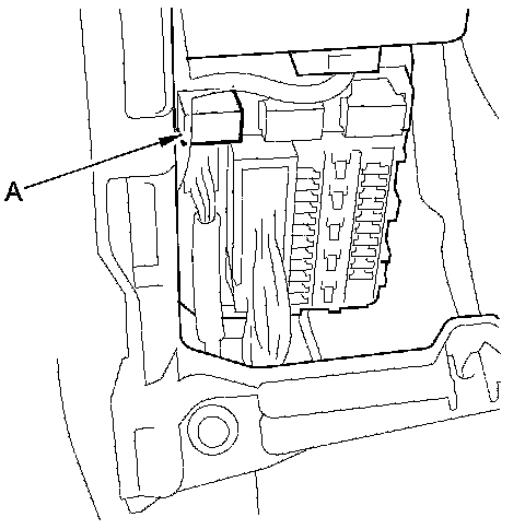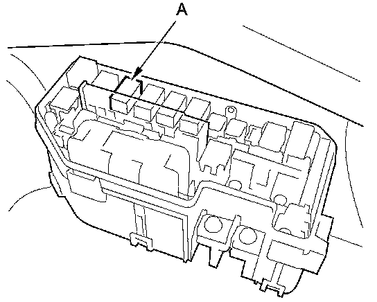 44. Remove PGM-FI main relay 2 (FUEL PUMP) (A) from the driver's under-dash fuse/relay box.