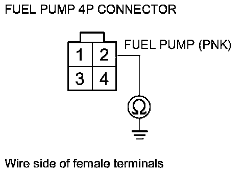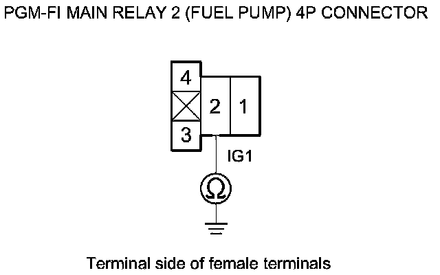 46. Check for continuity between PGM-FI main relay 2 (FUEL PUMP) 4P connector terminal No. 2 and body ground.
