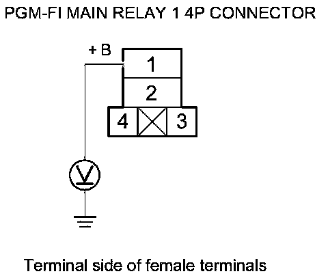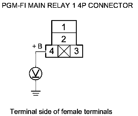 61. Measure the voltage between PGM-FI main relay 1 4P connector terminal No. 4 and body ground.