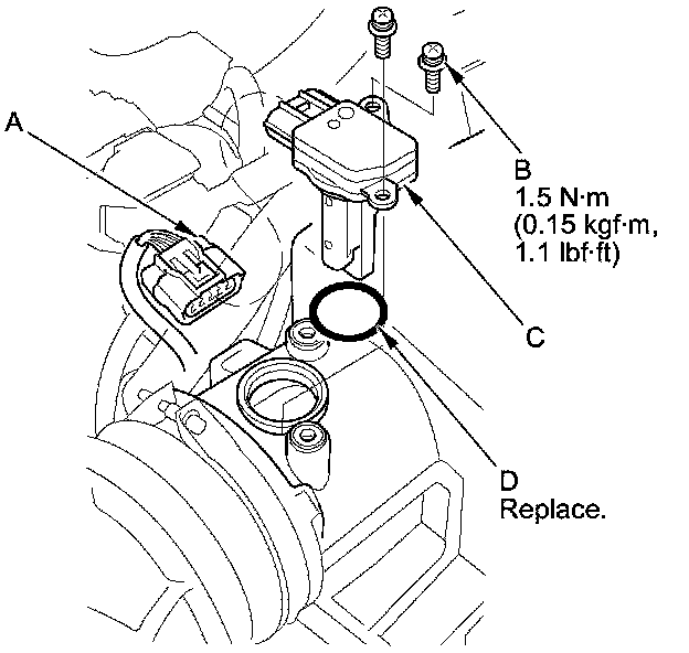 1. Disconnect the MAF sensor/IAT sensor connector (A).