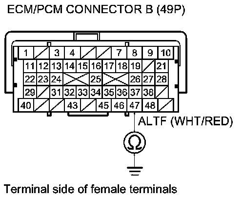 8. Check for continuity between ECM/PCM connector terminal B47 and body ground.
