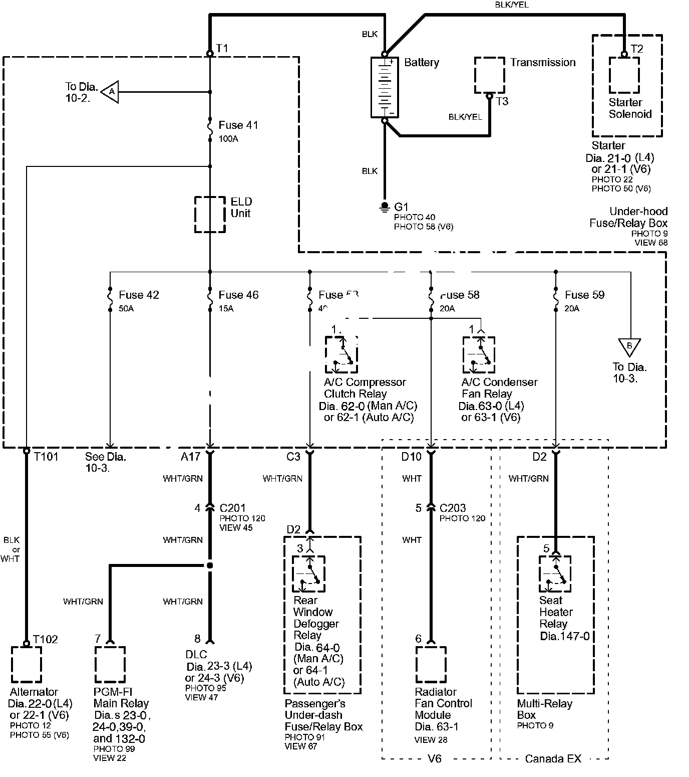 Power Distribution schematics show how power is supplied from the positive battery terminal to various circuits in the vehicle. Refer to the Power Distribution Diagram Set to get a more detailed understanding of how power is supplied to the circuit you're working on. Individual circuit schematics begin with a fuse.