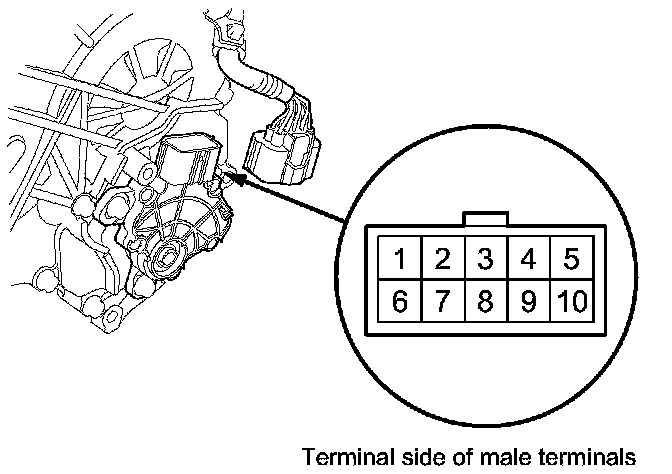 5. Check for continuity between the terminals at the subharness connector. There should be continuity between the terminals in the following table for each shift lever position.