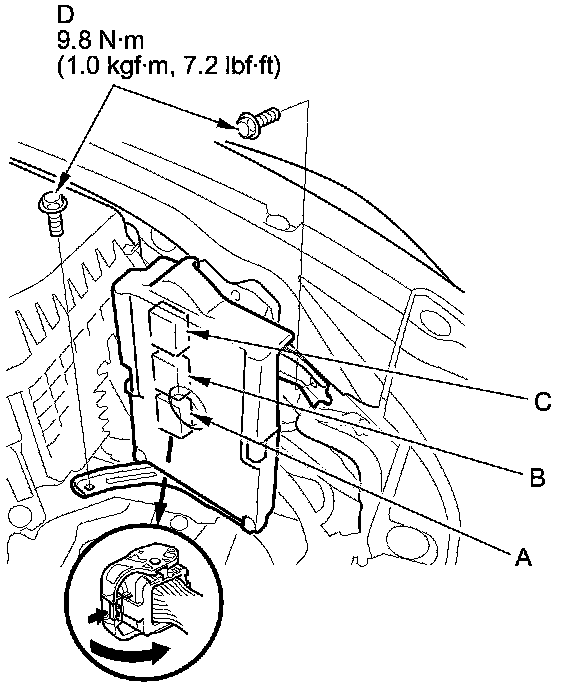When the PCM senses an abnormality in the input or output system, the D indicator (A) in the gauge control module (B) will usually blink.